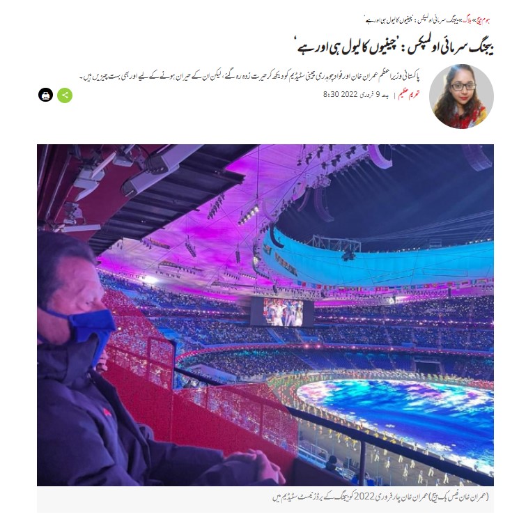 巴基斯坦留学生,2019级传播学专业博士生Tehreem Azeem(中文名:谭笑)所著的文章《北京冬奥会:另一种水平》2月9日见于巴基斯坦媒体《独立报·乌尔都语版》(Independenturdu)官方网站。《独立报》是英国最有影响力的全国性日报之一,《独立报·乌尔都语版》提供了有关全球及巴基斯坦当地事件的“高质量、知情、独家新闻及报告分析”。