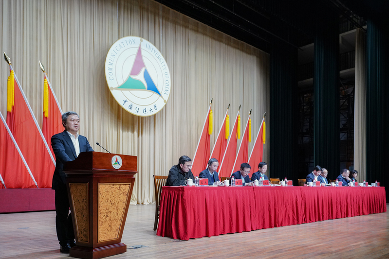 会议通过线下线上相结合的方式召开。主会场设在中传礼堂,校党委常委、校长助理,部分离任校领导,国家高层次人才称号入选人员代表、青年拔尖人才,博导代表、科研机构主要负责人代表,全体实职中层干部、校内挂职干部,全体组织员、校务委员会副主任、非处级中层干部,全体教工党支部书记,辅导员代表、教务员代表、校教学督导委员会代表,人大代表、政协委员、民主党派代表,离退休人员代表等在主会场参加会议。未在主会场参会的其他教职工线上参加会议。会议由党委副书记、纪委书记王达品主持。