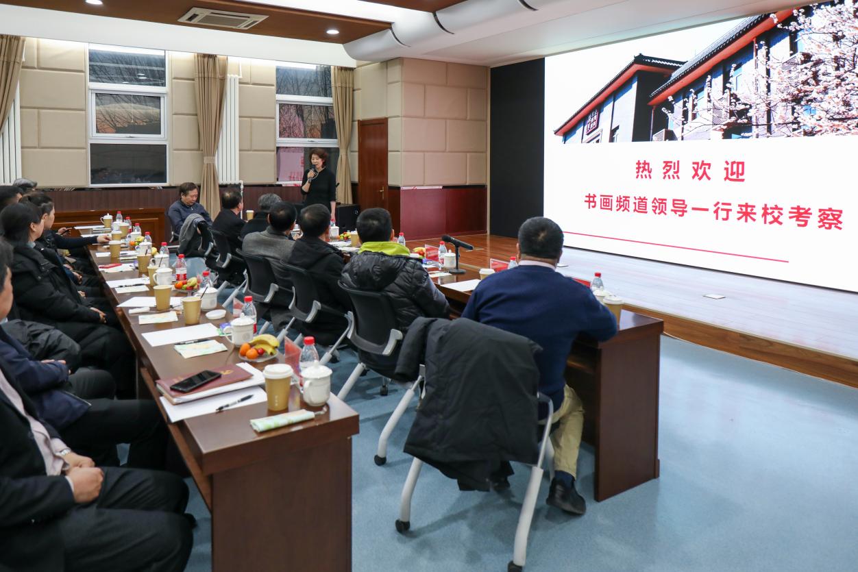 (通讯员 周维一 摄影 王雷亭 申皓文)2月22日下午,书画频道董事局主席王平,副总裁倪世春、节目总监周文军等一行18人来到我校参观调研,我校原党委书记李培元陪同调研,党委副书记李众、副校长王晖热情接待了王平主席一行。