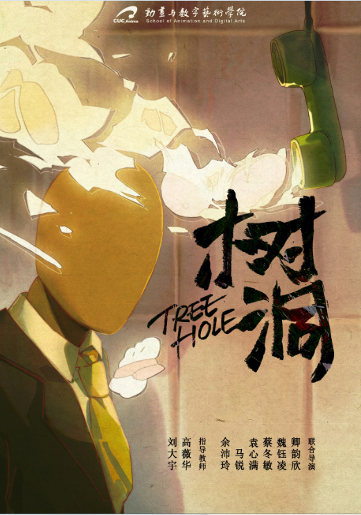 《树洞》是蔡冬敏、余沛玲、马锐、袁心满、魏钰凌、卿韵欣在动画与数字艺术学院高薇华、刘大宇两位老师的共同指导下完成的联合创作短片,讲述了一个每天被无数人当成倾诉对象的木偶人从一个抱着好奇心的孩子那里收获意外礼物的温暖故事,画风清新,创意十足。