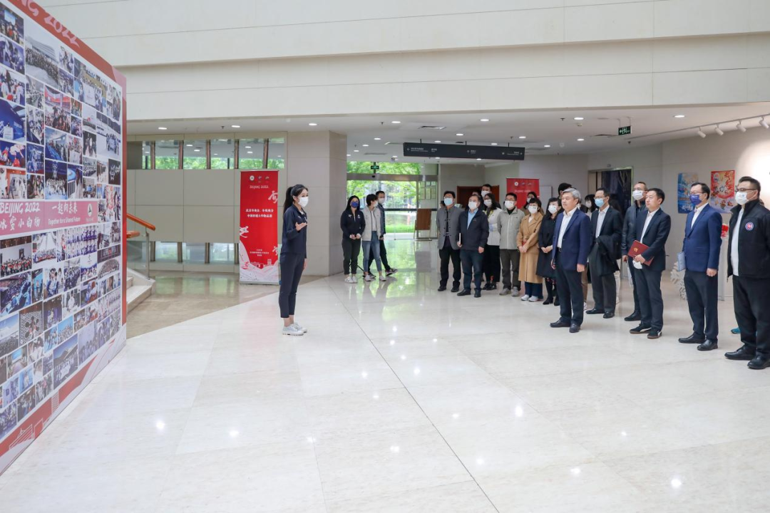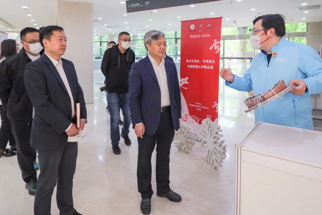 廖书记指出,赛场内外,中传青年的身影无处不在。中传“冰雪小白杨”在志愿服务、媒体转播、赛事播报、现场扩声、体育报道、赛事裁判、开闭幕式演出以及科技冬奥、国际传播、影视创作等多方面,全领域、深层次参与冬奥服务保障工作。赛事前后,冰雪文化的引领贯穿始终。通过一系列专题培训、实地探勘、测试赛事、文化活动,在校园中营造出浓厚热烈的冬奥氛围,获得社会媒体广泛关注,“冰雪小白杨”的故事深入人心。全校上下,细致周到的保障无缝衔接。学校党委统筹部署,12个工作组和6个项目办对接融合、紧密协作,数百名师生作为“志愿者的志愿者”在稳固可靠的大后方为同学们保驾护航。冬奥期间,全校师生以最高标准、最严要求、最好状态,圆满完成了光荣使命,与广大冬奥建设者、志愿者、工作者一道,共同创造了“胸怀大局、自信开放、迎难而上、追求卓越、共创未来”的伟大冬奥精神。