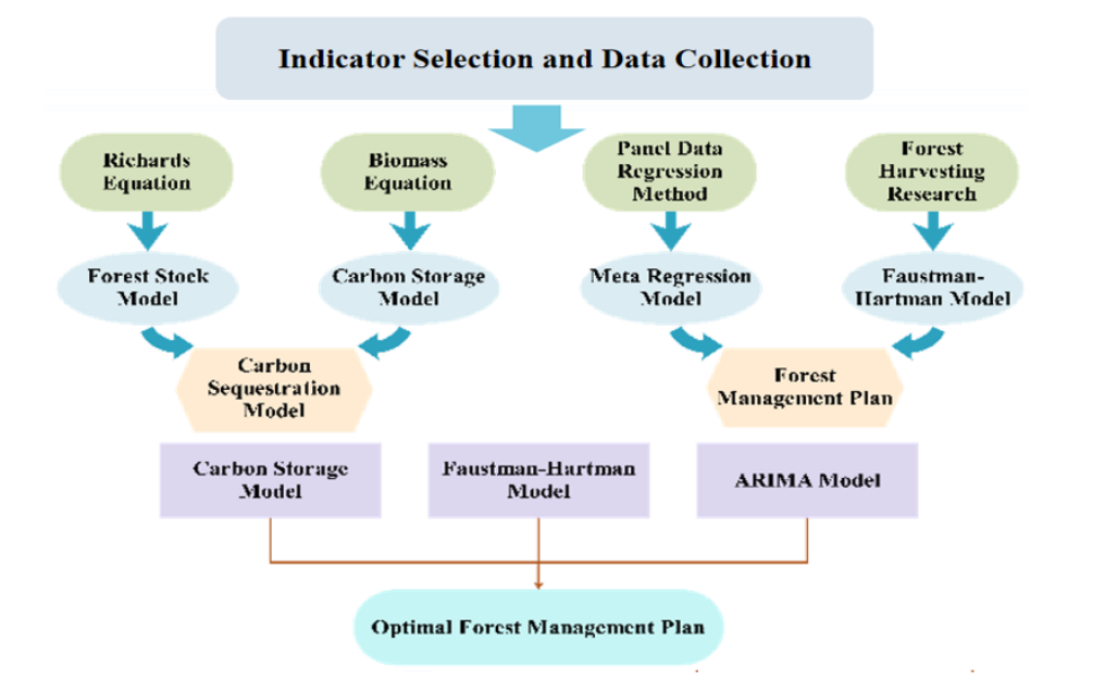 获本次“美赛”国际特等奖入围奖的参赛学生队伍所提交的论文围绕森林固碳展开研究,通过基于理查德方程的蓄积量模型对森林生长进行定量分析,通过基于改进的Faustman-Hartman模型对森林生态价值进行量化分析,在此基础上利用所提供的巴西森林数据,提出森林管理计划,并通过碳封存模型和ARIMA模型,预测了未来100年内巴西森林能封存二氧化碳的质量。论文最后还对模型的灵敏度进行了分析,验证了模型的准确性,同时结合建模结果,为报纸撰写了相关文章。