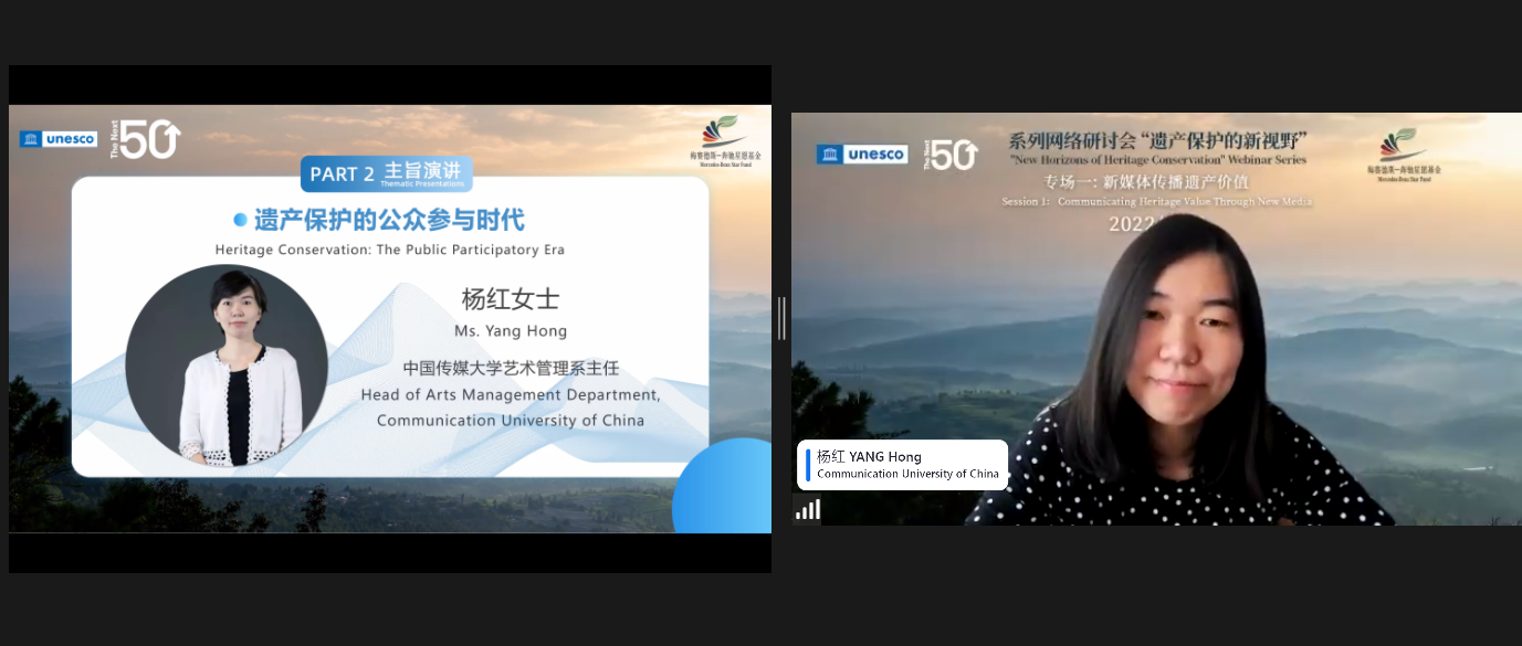 该系列网络研讨会旨在就遗产保护、可持续发展、气候变化以及其他相关主题进行前瞻性的对话和交流,向世界遗产的管理者、传承人、当地社区、文化领域的专家、从业者以及青年提供中国背景下的最新知识和良好实践。在疫情防控背景下,传统的面对面交流和知识共享方式面临巨大挑战,因而首场研讨会聚焦新媒体,是非常具有意义的话题。