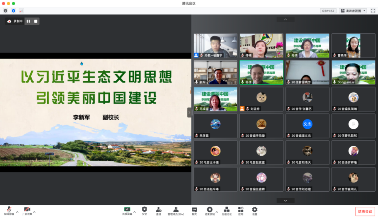 (通讯员 崔鑫宇 刘孟乔)5月25日,李新军副校长走进本科生《毛泽东思想和中国特色社会主义理论体系概论》课堂,给同学们讲授了题为“以习近平生态文明思想引领美丽中国建设”的云端思政课。
