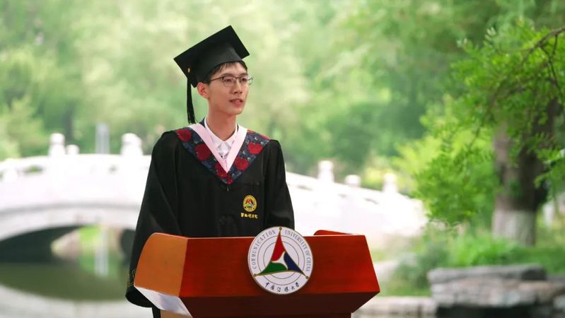 电视学院2022届网络与新媒体专业本科毕业生吕九海作为学生代表发言。他通过回顾在校期间参加庆祝新中国成立70周年群众游行方阵、参加庆祝建党百年大型文艺演出、参与冬奥会志愿服务等难忘经历,表达中传学子心系家国、无私奉献的优良品质和责任担当,通过回顾在学校学习生活的点滴记忆,表达对母校的感恩、不舍和依恋。他代表毕业生表态:要立志做无私奉献、锐意进取的追梦人,以奋斗有我、强国有我、功成有我的姿态,激荡起新时代的澎湃春潮。