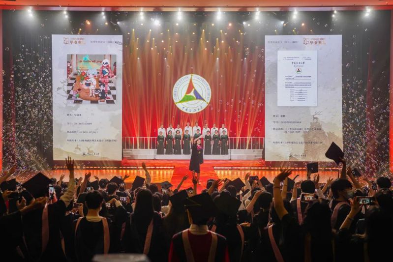 本次毕业典礼在张绍刚、冯琳两位主持人的串联下,还穿插了暖场短片、学院寄语、家长祝福、校友互动、明星连线、幸运抽奖等环节,整场典礼既是一堂深刻难忘的思政大课、人生大课,又是一台精彩绝伦的文化盛宴、综艺大餐。