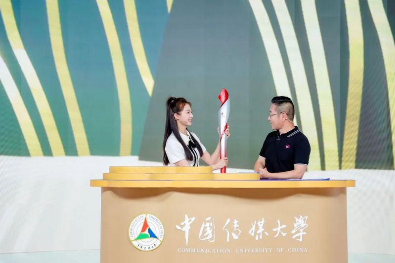 作为北京冬奥会圣火传递火炬手的冯琳,在主持过程中将自己珍藏的火炬留给了母校,表达对母校的热爱与感恩。