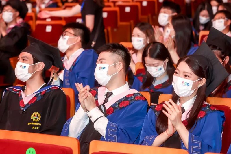 2002届新闻专业校友、中央广播电视总台导演、制片人,北京冬奥会开闭幕式文字总撰稿,《国家宝藏》总导演,2022年央视春节联欢晚会副总导演于蕾作为校友代表发言。她通过回顾在学校难忘的学习生活经历、毕业后的工作创业感悟,告诫毕业生们要感恩母校,不忘母校;要拥有理想,热爱事业,带着初心,成为传播者、创造者,“不必等待炬火”,相信每个人都是中传之光。