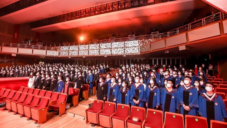 上午九点,毕业典礼正式开始,全场起立高唱国歌。