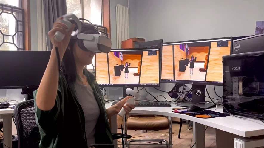 毕业季系列活动中,学院师生团队借助虚拟现实、自然交互、三维重建、三维引擎等数字技术,在元宇宙中生动复刻了中传校园建筑物以及充满未来科技感的Anima星球作品展厅,并且埋设了众多与校园特色文化、大学生活情感记忆紧密关联的彩蛋。体验者可以通过VR、移动端或PC端接入,以虚拟化身开启一场毕业典礼与毕业作品观赏的体验之旅。学院还借助和平精英绿洲启元开放平台,为毕业生们献上了一场别开生面的云端毕业红毯仪式。学院师生与VRChat联手打造的《元创Meta Awakening——2022届中传动院毕业设计虚拟展览》也在毕业典礼结束时即刻上线。