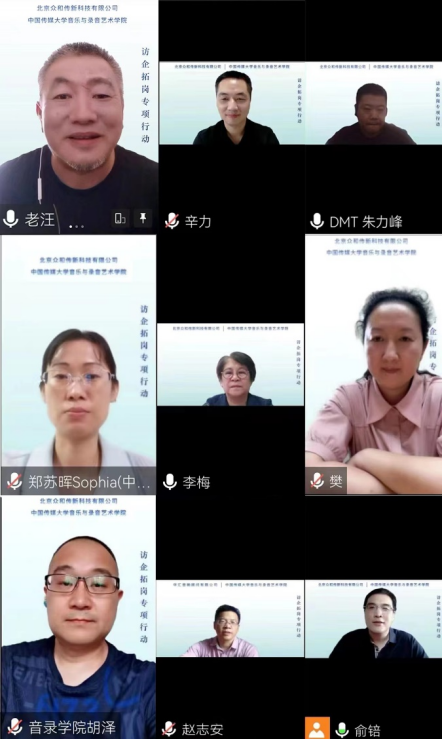 众和传新公司技术销售总监辛力,广电部技术销售经理朱立峰;学校音乐与录音艺术学院院长李俊梅,党委书记郑苏晖,党委副书记樊娜,副院长胡泽、赵志安、俞锫等参加交流会。双方就学科建设、教学实践、科研项目、对外交流合作、实习就业等方面展开了深入交流与探讨。大家一致表示,在“协同育人”机制下,校企双方将共同为学生的发展保驾护航,真正培养出思想过硬、专业过硬的优秀人才。