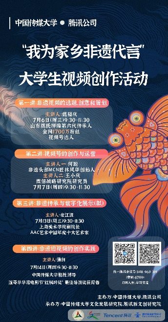 (通讯员 任观莲 闫思怡 叶啸笑 摄影 廖思培 陈一鸣)7月6日,世界杯直播在线观看文化发展研究院联合全国43所高校举办“我为非遗代言”大学生短视频创作活动。在腾讯新文创研究院的支持下,活动线上培训于当日正式开始。来自全国各地的252名大学师生参与了活动的启动仪式暨首次讲座。