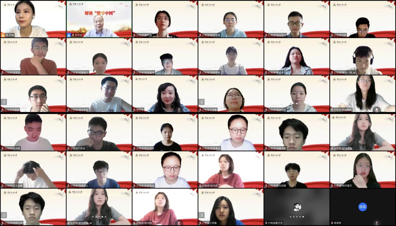 (通讯员 尹琦)为深入学习贯彻习近平新时代中国特色社会主义思想,深刻理解习近平总书记关于网络强国重要论述的深刻内涵,牢牢掌握数字化变革历史主动,积极投身“数字中国”建设,为实现中华民族伟大复兴的中国梦贡献智慧和力量。7月15日下午,刘守训副校长在线上为信息与通信工程学院2021级电子信息工程本科专业学生讲授了“解读‘数字中国’”专题思政课。课程由信息与通信工程学院党委副书记钟丹丹主持。