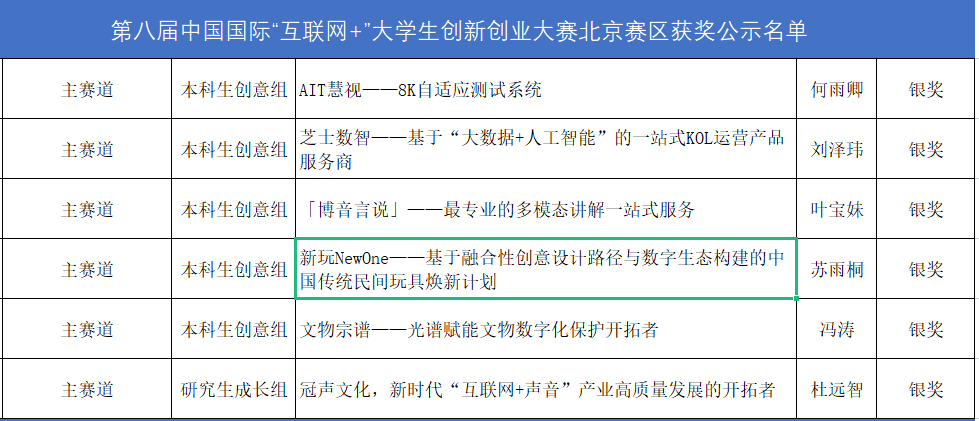 (通讯员 雷涵钦)7月23日-24日,第八届中国国际“互联网+”大学生创新创业大赛北京赛区决赛在北京邮电大学举行。大赛自4月启动以来,北京市共有1.5万个项目报名参赛,参赛人次超过8.8万。经过激烈角逐,我校共获得58个奖项,其中7个项目在比赛中脱颖而出荣获金奖,包括5个主赛道项目、2个“青年红色筑梦之旅”赛道项目,再次刷新我校历史最好成绩。
