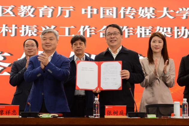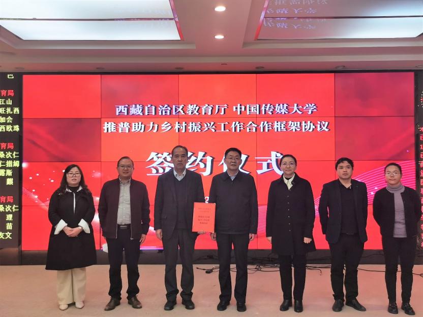 廖祥忠书记强调,在全国上下全面系统深入学习贯彻二十大精神的热潮中,学校与自治区教育厅签署“推普助力乡村振兴工作合作框架协议”,意义重大。作为国家一流学科建设高校,我校坚持服务国家重大战略需求,始终与党和国家同向同行,同频共振,将助力乡村振兴作为学校落实立德树人根本任务、培养教师干部家国情怀的有力抓手,作为学校坚持扎根中国大地办大学,探索传媒特色帮扶路径的重要载体,在助力推进乡村振兴、服务国家战略与构建中华民族命运共同体中不断贡献高校智慧与中传方案。多年来,我校持续践行“真情援藏、科学援藏、持续援藏”的工作方针,与西藏自治区合作开展了多项工作。今后,学校将持续发挥学科专业优势,加大推普工作力度,探索出“文化为魂、语言为基、技能为本”的创新型西藏语言教育模式,不断开创校地协作、校地共赢全新局面,为绘就自治区乡村振兴壮美画卷贡献更大力量。