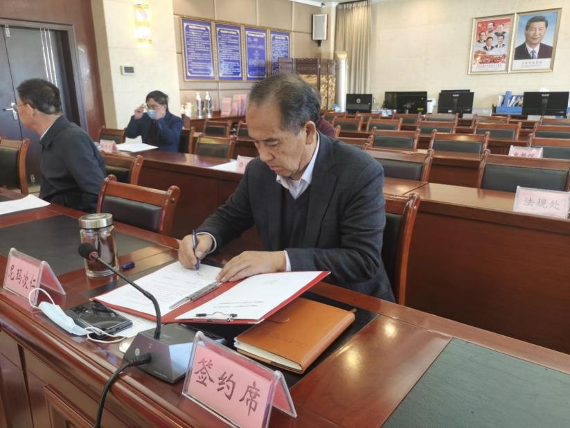 会上,西藏自治区教育厅厅长尼玛次仁与我校校长张树庭代表双方签约。