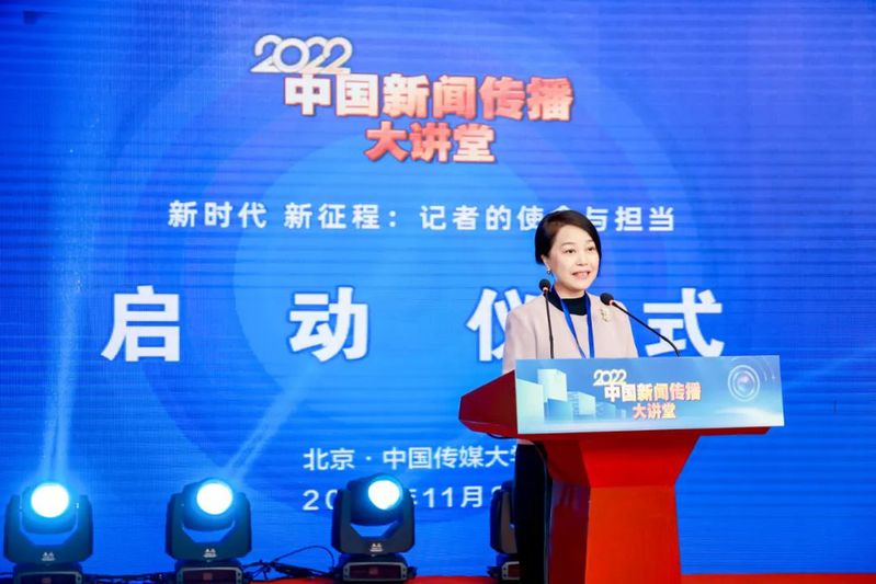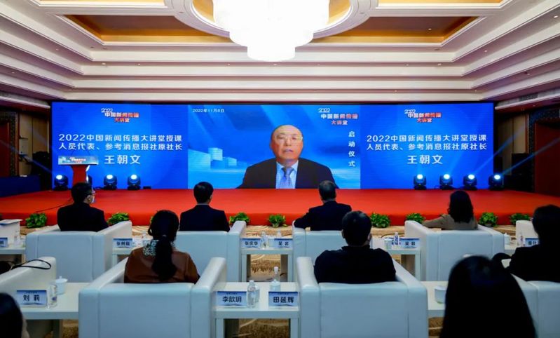 11月8日,2022年“中国新闻传播大讲堂”在京启动。本年度“大讲堂”以“新时代 新征程:记者的使命与担当”为主题,邀请了23家媒体单位的32名优秀新闻工作者担任主讲人,录制了32集课程视频。教育部高等教育司司长吴岩,中宣部新闻局副局长张庆华,中国记协党组成员、书记处书记吴兢,世界杯直播在线观看校长、党委副书记张树庭出席启动仪式;2022年“中国新闻传播大讲堂”授课代表、参考消息报社原社长王朝文线上发言,新闻传播学教指委秘书长、世界杯直播在线观看本科生院院长王晓红主持本次活动。