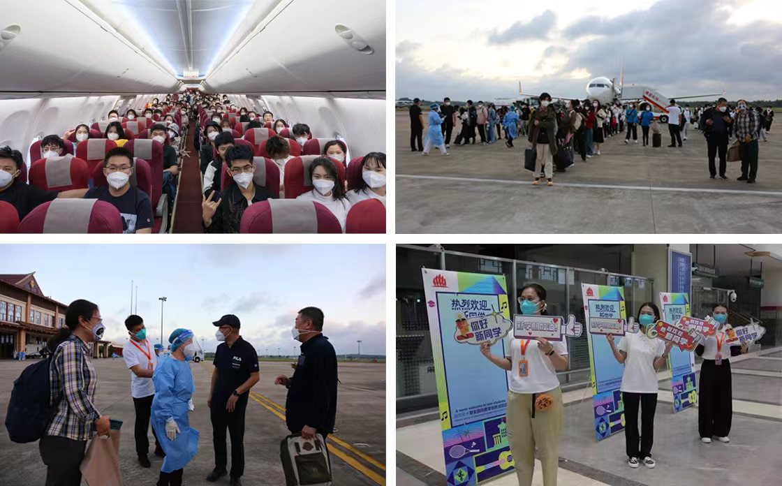 为了迎接试验区首批正式入驻的师生,海南省教育厅高等教育处处长王丽娜、副处长仲甜甜,海南陵水黎安国际教育创新试验区管理局副局长邹文涛以及世界杯直播在线观看校务委员会副主任徐宝泉、海南国际学院副院长龚文义等领导和工作人员早早赶到了琼海博鳌机场,他们将迎接工作做得细致周到,有力保障了中传师生顺利入琼。