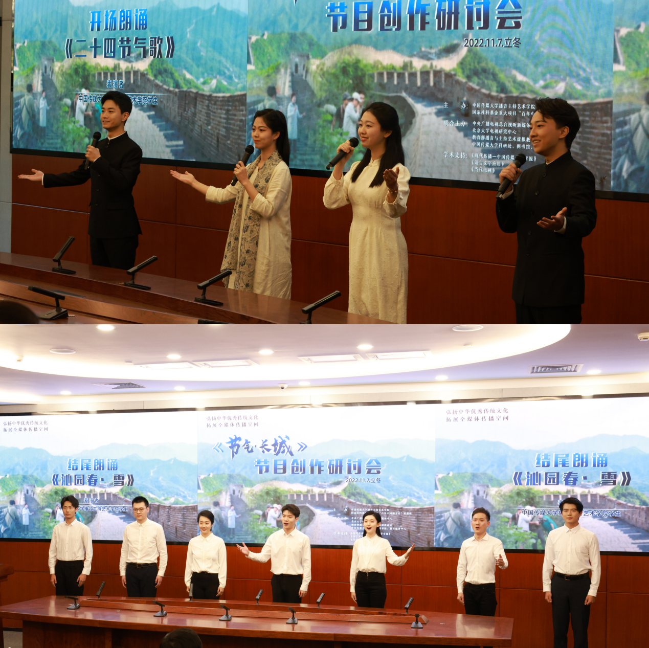 天地始冻,万物收藏。《节气·长城》节目创作研讨会在播音主持艺术学院学子的朗诵《沁园春·雪》中圆满结束。