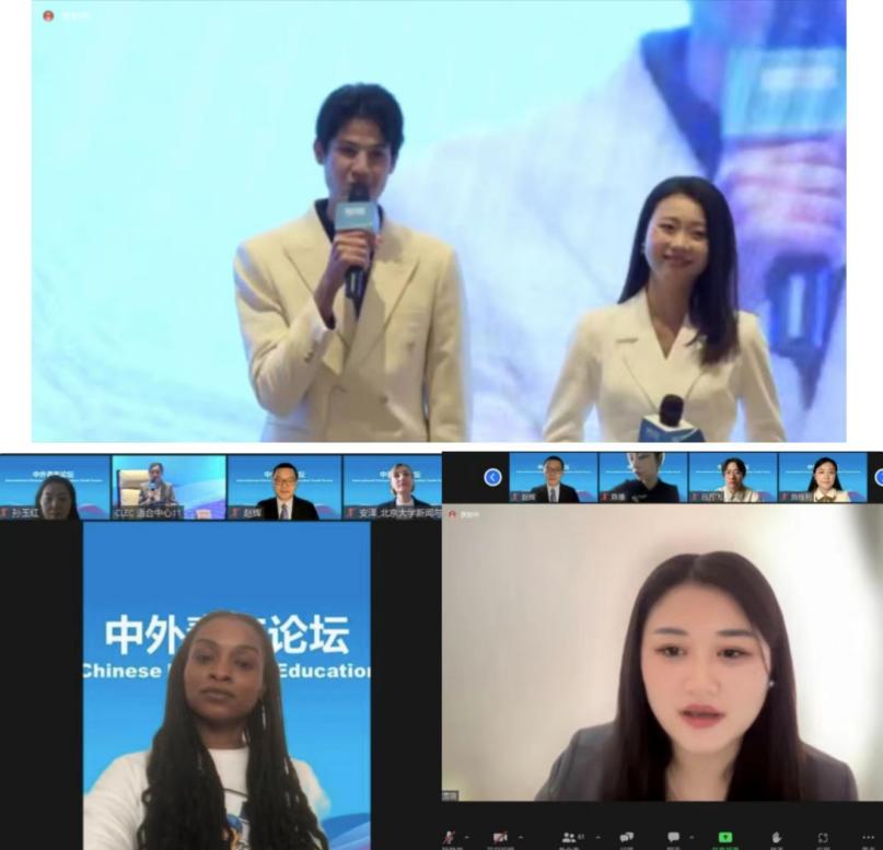 在12月10日举办的“国际中文教育中外青年论坛”中,我校国际中文教师奖学金生、“汉语桥”获奖选手、汉语国际教育本科尼日利亚学生洪玛应邀出席,并就“国际中文教育多样性”主题发言。我校播音主持艺术学院硕士、“汉语桥”获奖选手埃及的刘正曦和韩国的金恩智,以及我校巴西南大河州联邦大学孔子学院归国志愿者宋雪薇主持了论坛。