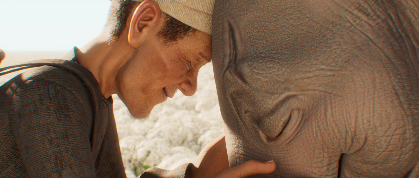 《象群挽歌》是卢思杰、李金泽、佘钰奇、马心玥、张淙乐、熊炜在动画与数字艺术学段雯锴老师的指导下创作完成的毕业设计短片,通过精湛的画面讲述了一只从偷猎者手下逃出生天的小象在一位傣族老人的细心呵护下逐渐摆脱对人类的畏惧并和老人建立起深刻情感联结的感人故事,表达了人与动物和谐共生的主题思想,赢得了评委会的一致青睐。