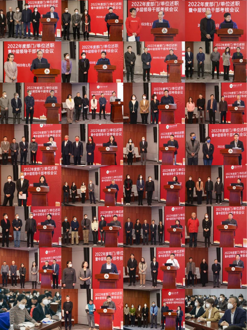 各部门、各单位围绕“代表作+贡献度+主观评价”十字方针要求,在规定的时间内,聚焦年度工作亮点和标志性成果,紧扣服务国家、社会和学校改革发展作出的突出贡献,对照年度工作目标任务进行自我评价,查摆问题不足,明确努力方向和2023年度工作思路。