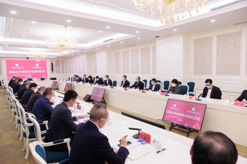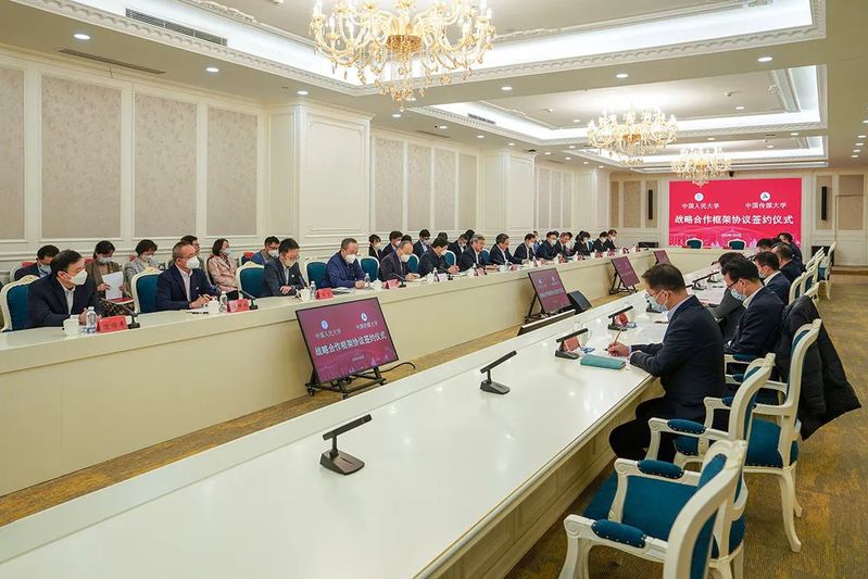 在张东刚书记、廖祥忠书记的共同见证下,中国人民大学副校长王轶与世界杯直播在线观看校长张树庭代表双方签署了战略合作协议。