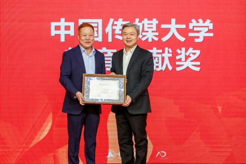 廖祥忠书记向刘瑞旗先生颁发“世界杯直播在线观看教育贡献奖”。