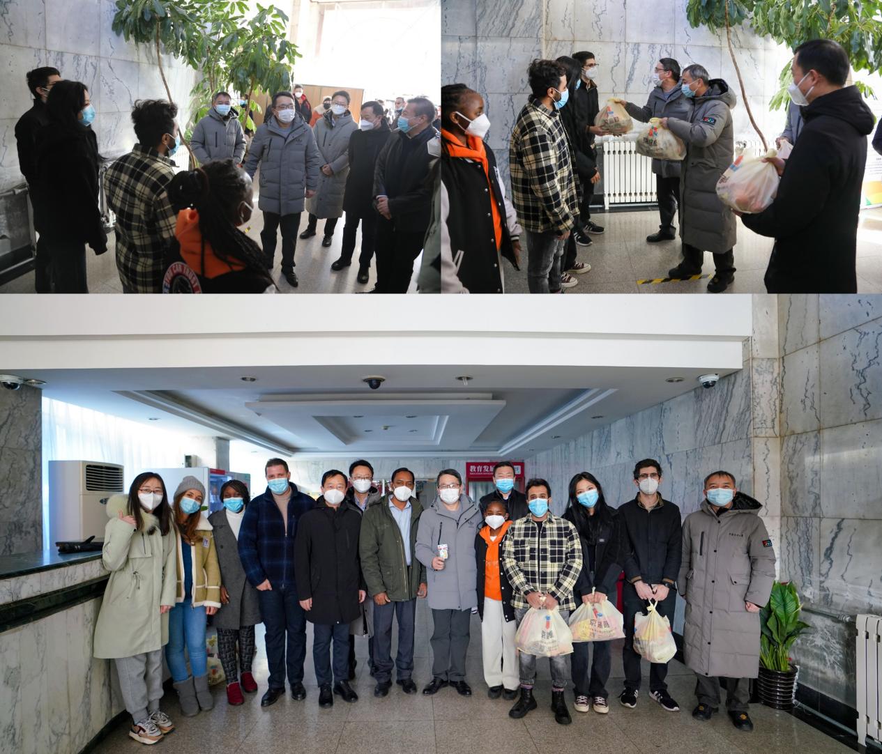 在留学生公寓,张校长向留学生代表致以美好的新春祝福,叮嘱他们做好防护、保重身体,并鼓励同学们通过亲历中国传统节日,感受和认识中国文化,做好中国和所在国文化交流的使者。