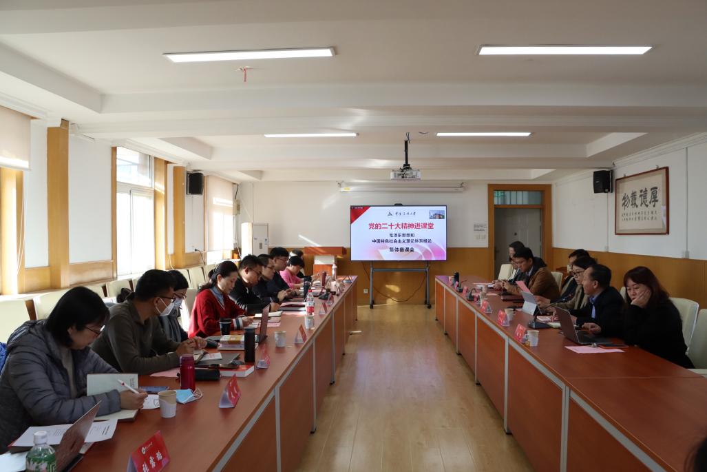 (通讯员 张凯 原晋菲)3月1日下午,马克思主义学院举行党的二十大精神进课堂——《毛泽东思想和中国特色社会主义理论体系概论》课程(以下简称“‘概论’课”)集体备课会。此次备课会特邀中国人民大学马克思主义学院副院长宋友文教授参会指导。学校党委副书记、纪委书记王达品,本科生院院长王晓红,教育质量评估与督导处处长张涛出席观摩。马克思主义学院领导班子成员及“概论”课授课教师团队等思政课教师参加备课会。备课会由马克思主义学院党委书记王维家主持。