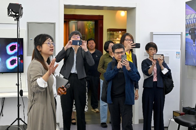 座谈会前,李慧玲一行在动画与数字艺术学院数字媒体艺术系李海玲主任以及范敏副教授的带领下参观了学院。李慧玲对动画与数字艺术学院先进的办学理念以及在新媒体技术等领域的创新成果表达了肯定和赞赏。