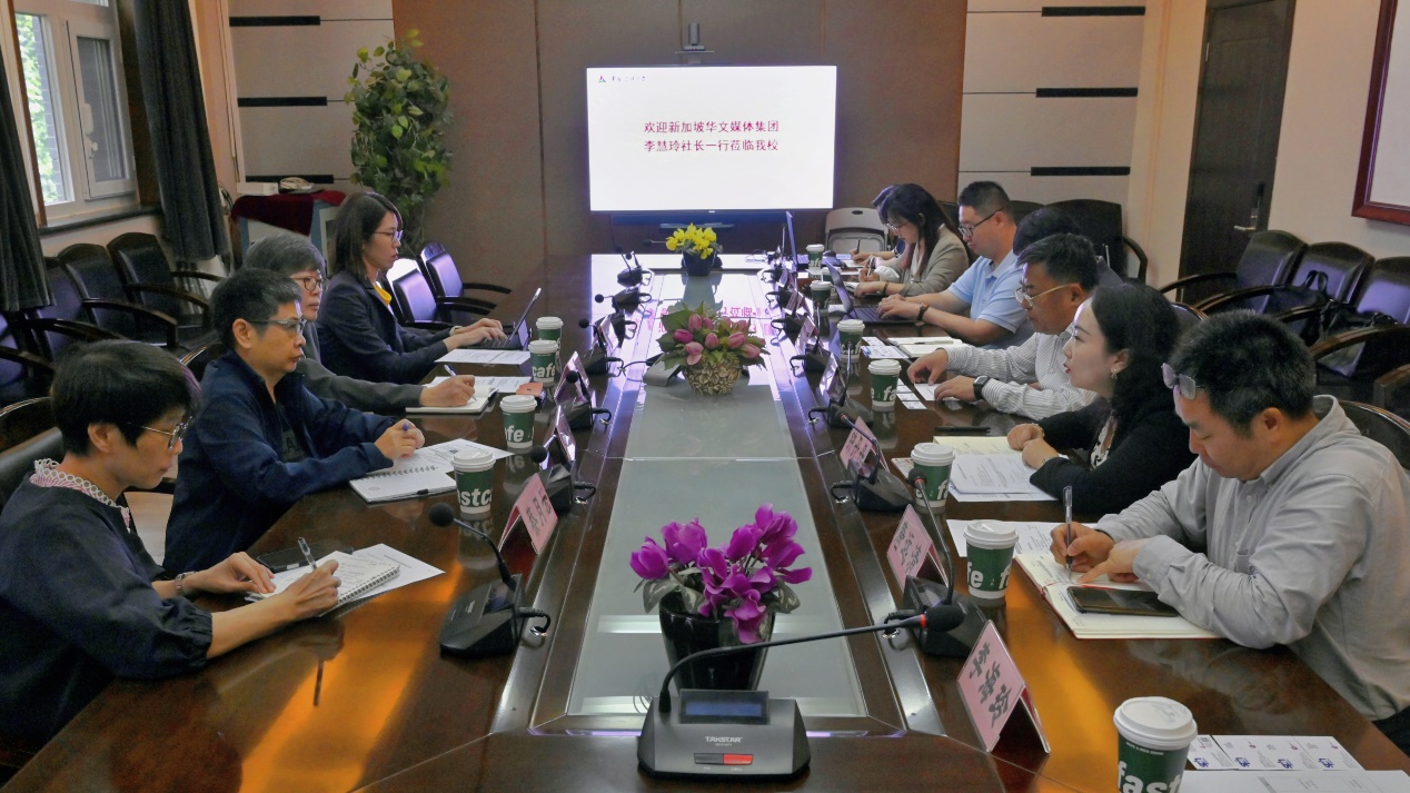 国际交流与合作处处长钟丹丹对李社长一行来访表示热烈的欢迎,并表达了我校对华文媒体集团在国际交流方面的合作意向,期待与华文媒体集团深度合作,促进学术和实务的深度融合,推动双方共同探索媒介前沿发展,培养具有国际影响力的新闻传播人才。