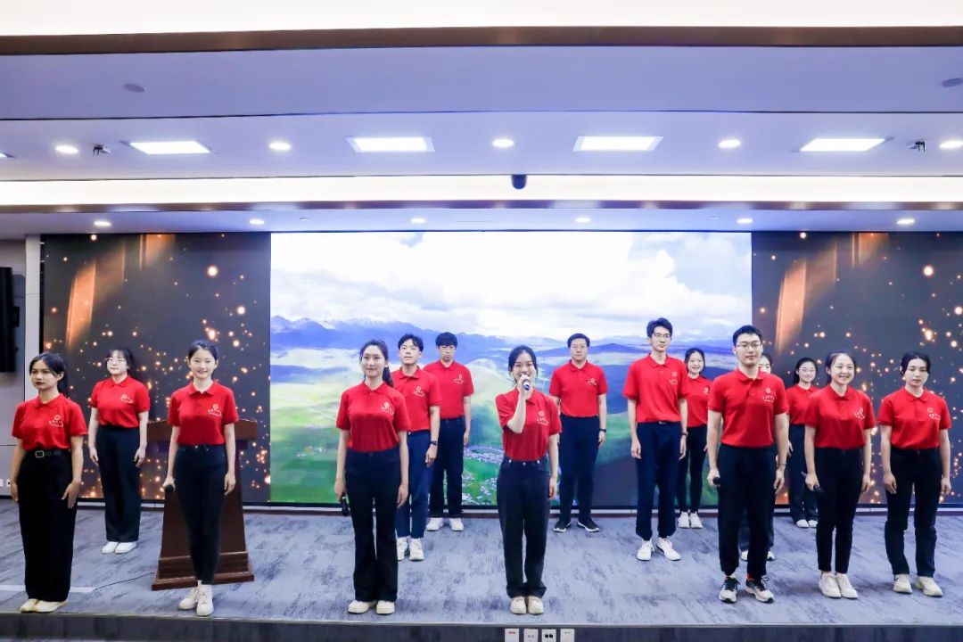青马学院六期学员代表表演了节目《白杨精神·上下求索》《扎根土地·青春当歌》,分别以情景讲述与合唱的形式回顾了一年来的学习实践成果,展示出青马学员积极进取的精神风貌和实干担当的奋斗姿态。