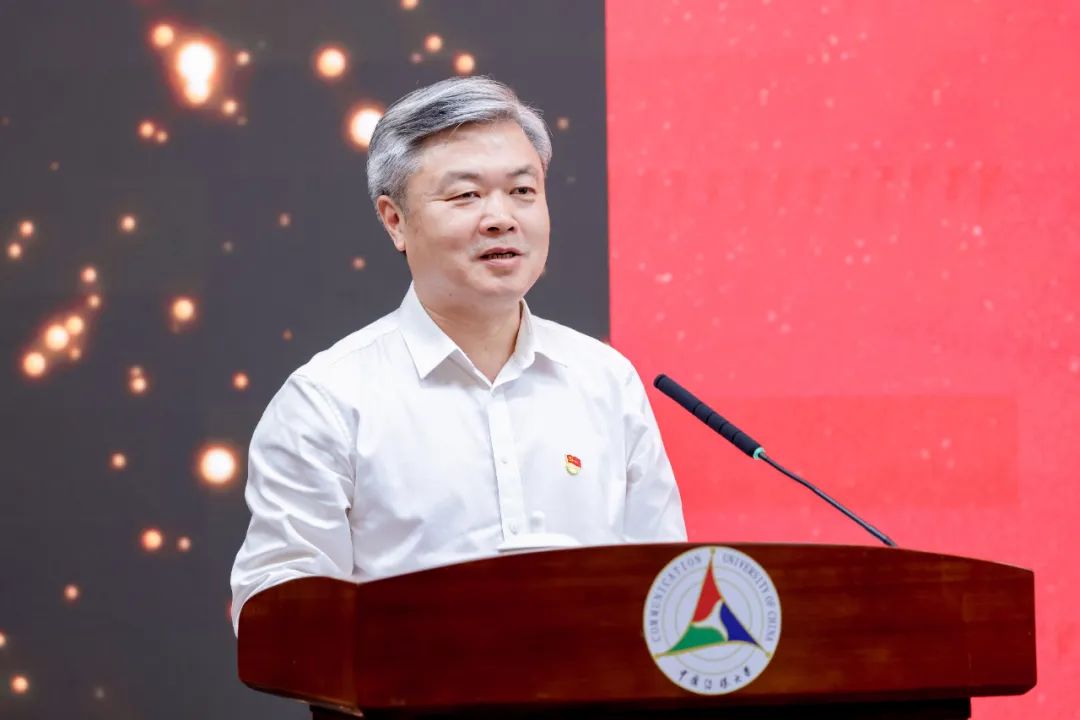 奏唱国歌后,刘东建首先致辞,介绍青年马克思主义学院六期学员的学习情况。刘东建表示,六期学员在青马学院学习的一年是紧张充实的一年,也是“自找苦吃”的一年,学员们以“四个自信”为主线开展学习实践,学习党的二十大精神,赴内蒙古科右前旗参加生产劳动和社会实践。未来,青马学院将紧紧围绕学习贯彻习近平新时代中国特色社会主义思想这一核心任务,继续深入推进课程改革和教学模式改革,构建有传媒特色的青马教学实践体系。