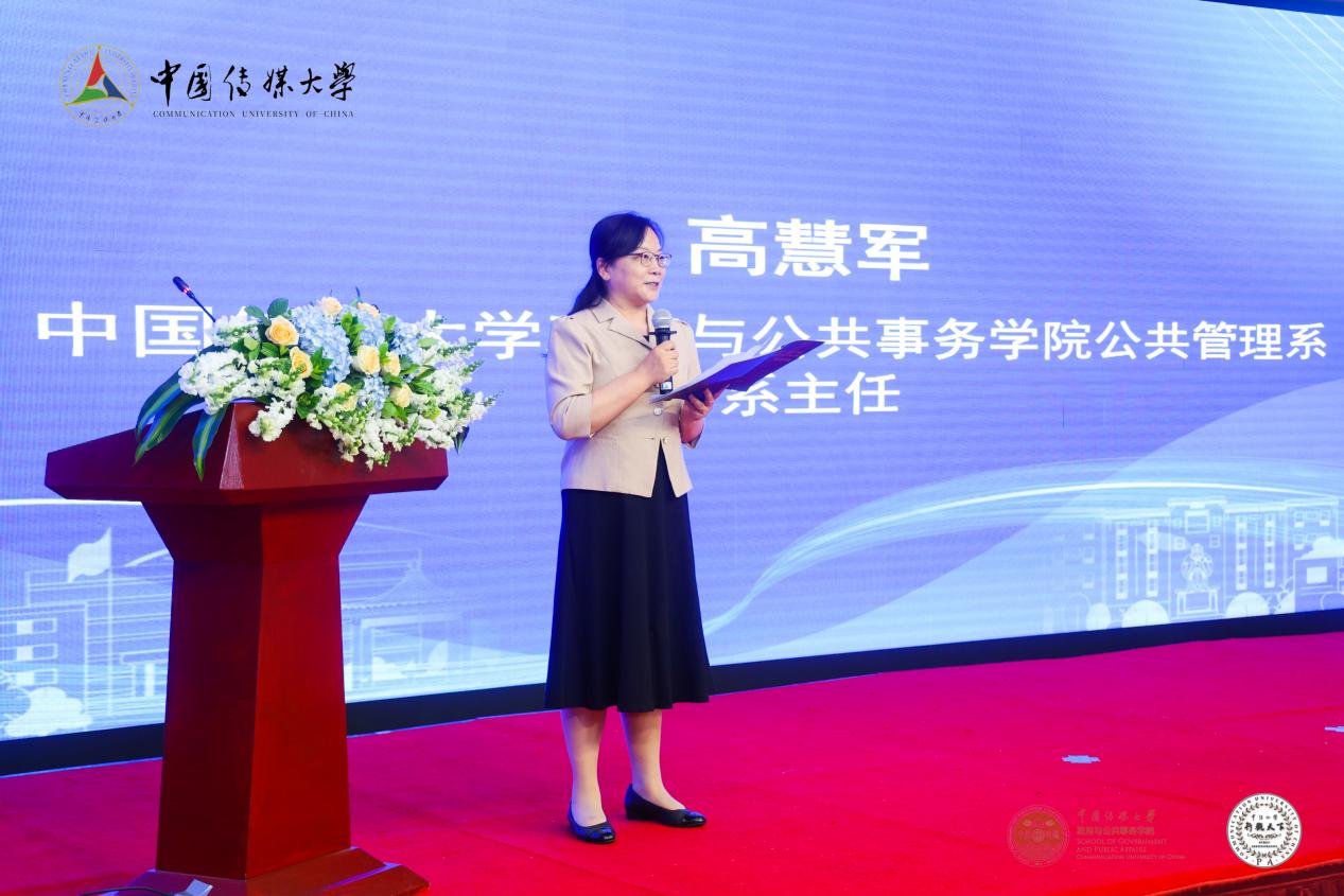 公共管理系系主任高慧军教授发言并宣布获奖名单。她衷心祝贺各位获奖选手,感谢兄弟院校的鼎力相助、领导嘉宾的关心支持,并为同学们身上展现出的学术功底和公管情怀动容