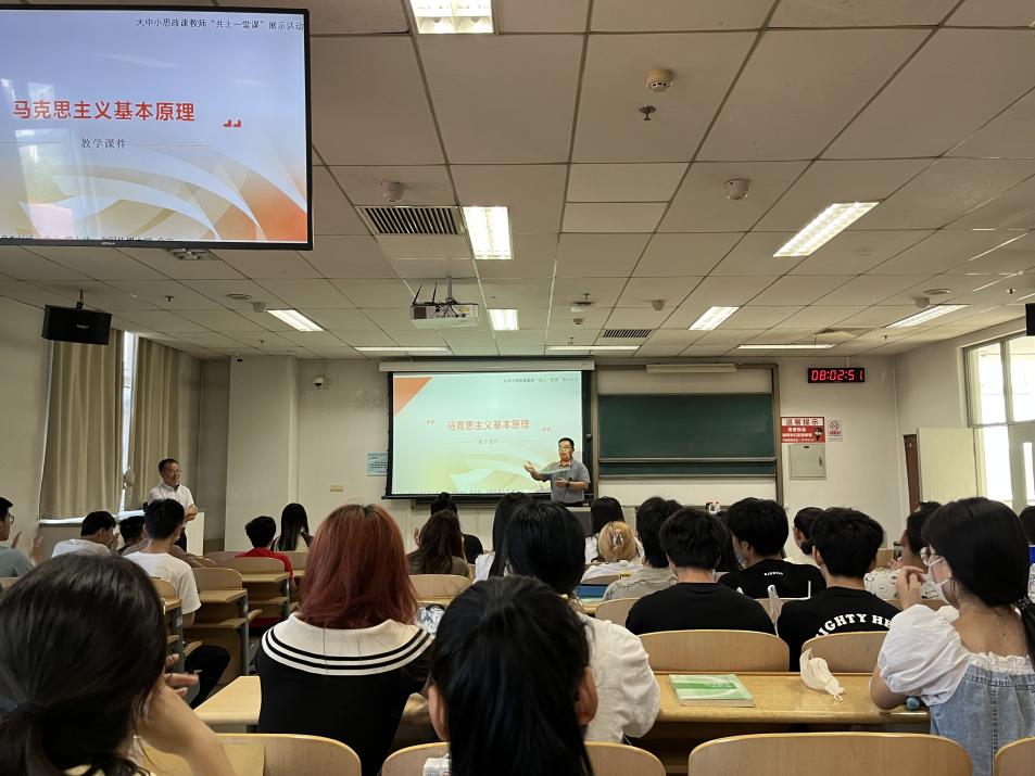 交流会前,《马克思主义基本原理》课程任课教师高宇同朝阳区思想政治教育指导评价中心曾志伟副主任共同完成了本学期大中小学思政课教师“共上一堂课”教学展示活动,马克思主义学院副院长王锦刚以及柳歆智、张梦然、张爱玲、刘洁老师观摩了课堂展示。这是继《思想道德与法治》课程任课教师刘洁、阴军莉、姚旭之后开展的第四期“共上一堂课”教学展示活动,受到学生的认可与好评。