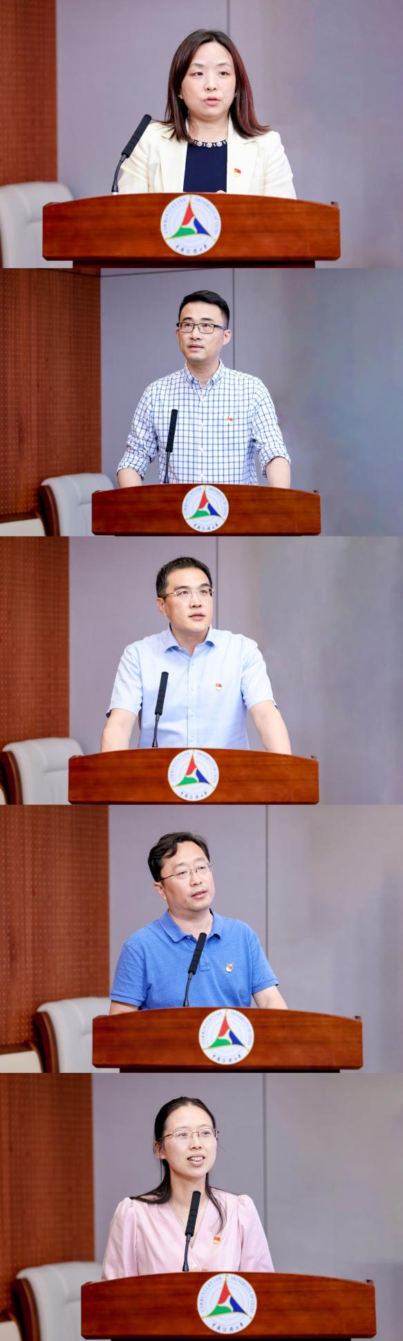 随后,分别来自新闻学院新闻系教工党支部、电视学院视听传播系教工党支部、音乐与录音艺术学院艺术教育中心教工党支部、信息与通信工程学院媒体技术系教工党支部、外国语言文化学院欧洲语系教工党支部的陆佳怡、叶明睿、俞锫、杨成、颜巧容五位同志,作为教师党支部书记代表,进行了读书分享。支部书记们围绕学习贯彻习近平新时代中国特色社会主义思想,聚焦教育强国建设战略任务,结合岗位职责及工作实际,从一流师资队伍建设、课程思政实践路径、高站位做好艺术教育工作、党建和教学科研融合发展、创新外语人才培养等视角,多维度多方位地分享学习心得,交流工作体悟,思考发展方向。大家表示,通过读原著、学原文、悟原理,个人思想认识得到了深化,政治品格得到了锤炼,工作能力得到了提升,增强了用党的创新理论研究新情况、解决新问题的能力水平。