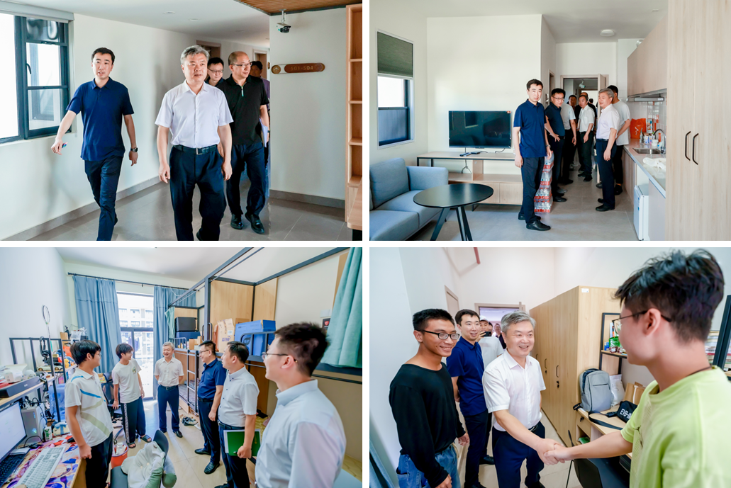 当天,廖祥忠一行来到教师宿舍,详细考察派驻教师公寓环境、住宿空间、生活保障等情况。他们还逐一走进学生宿舍,亲切看望学院同学,深入了解大家的生活情况。