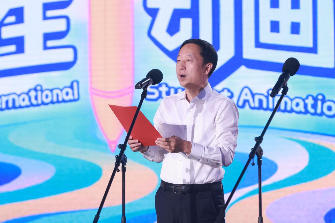 李众介绍了本届动画节筹备情况,并对我校过去一年的动画教育成果进行了介绍。他表示,本届大学生动画节的举办,是对我校过去办学成果的梳理,也翻开了我校动画及数字媒体教育的崭新一页。我校会继续秉承开拓创新的气度与魄力,以高度的学术责任感与使命感践行自身的教育理念,在动画与数字媒体教育的前沿阵地上做出更好的成绩。