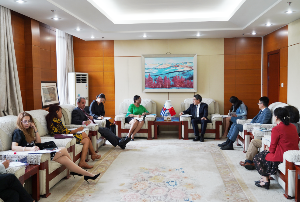 (通讯员 王文渊 摄影 魏之强) 7月29日下午,张树庭校长会见了来访的哈瓦那大学校长加西亚女士、古巴驻华大使馆代办罗德里格兹先生一行。双方就深化合作进行了洽谈。杨懿副校长参加了会见。