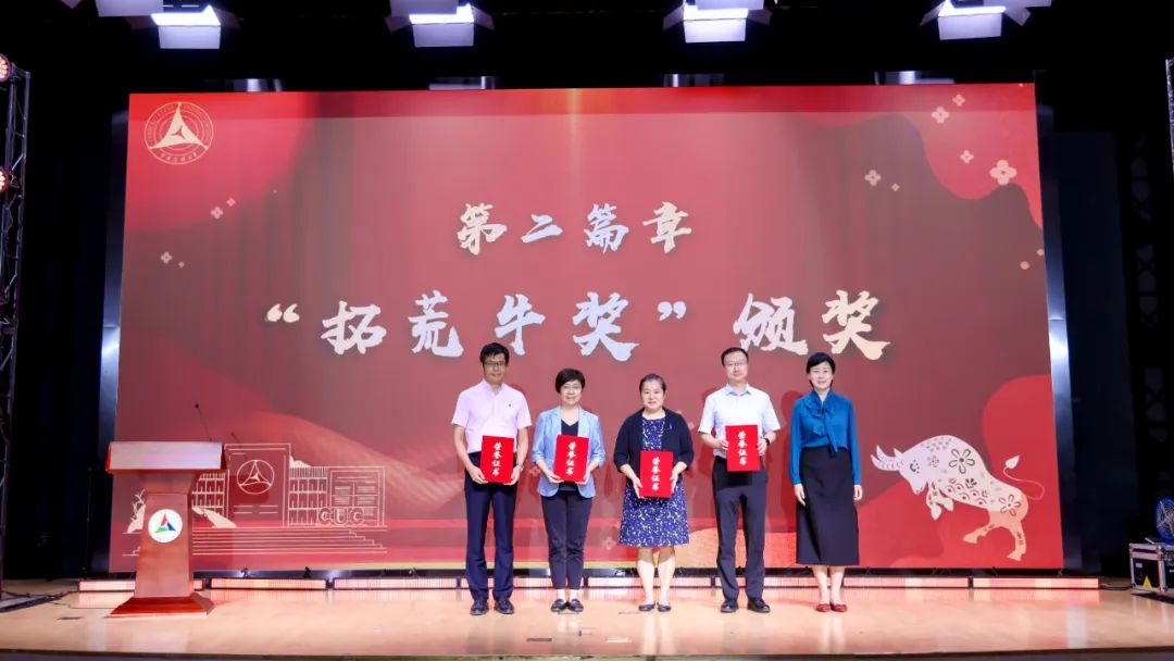 党委常委、统战部部长张绍华,校务委员会副主任张鸿声、李增瑞,科学研究处处长周建新,人事处处长曹坤分别为“拓荒牛奖”科学研究类、改革创新与攻坚类、人才引育类获奖团队和个人代表颁奖。