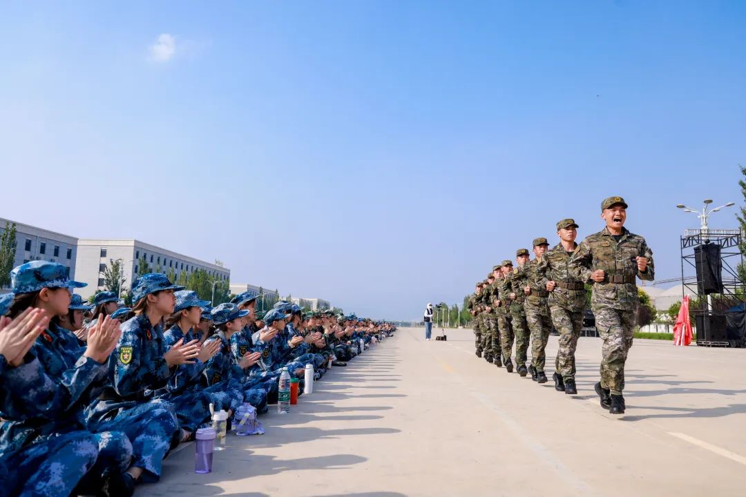 开训仪式上,教官们示范表演了部分军事科目,挺拔的行军姿态、整齐的队列动作和昂扬的精神面貌赢得了师生的热烈掌声。