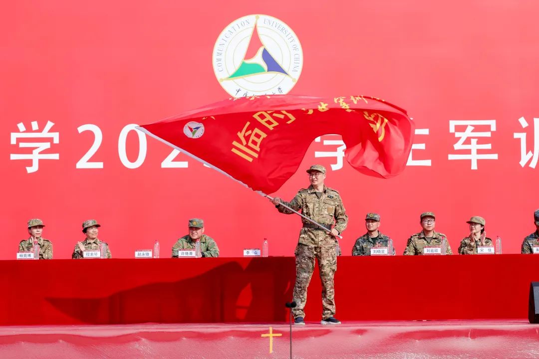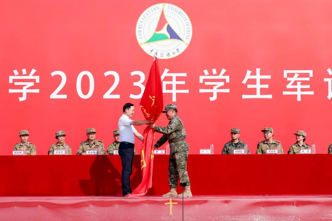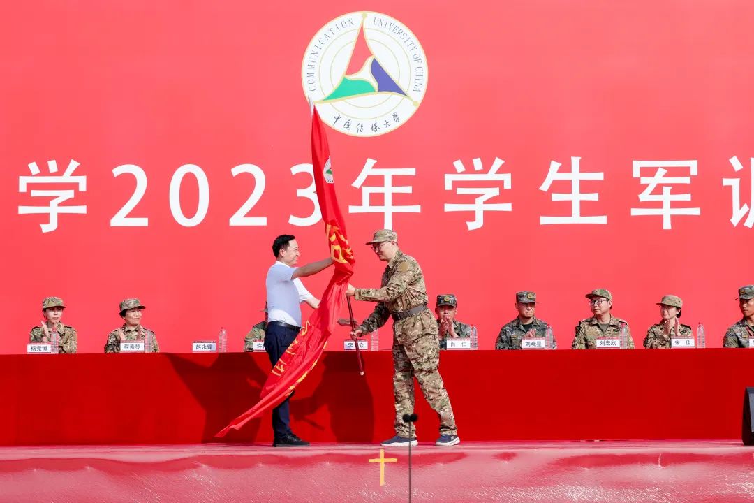 李众向军训团授予团旗,肖仁接旗;向世界杯直播在线观看学生军训团临时党支部授旗,赵永锋接旗。