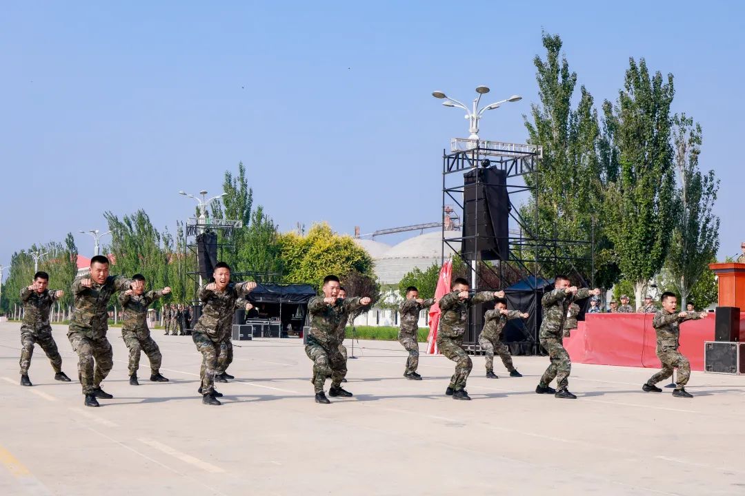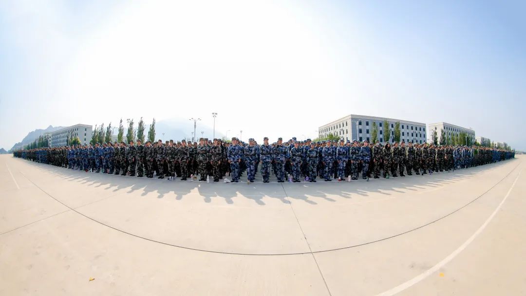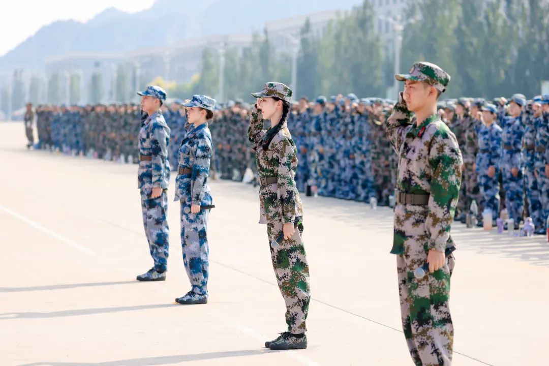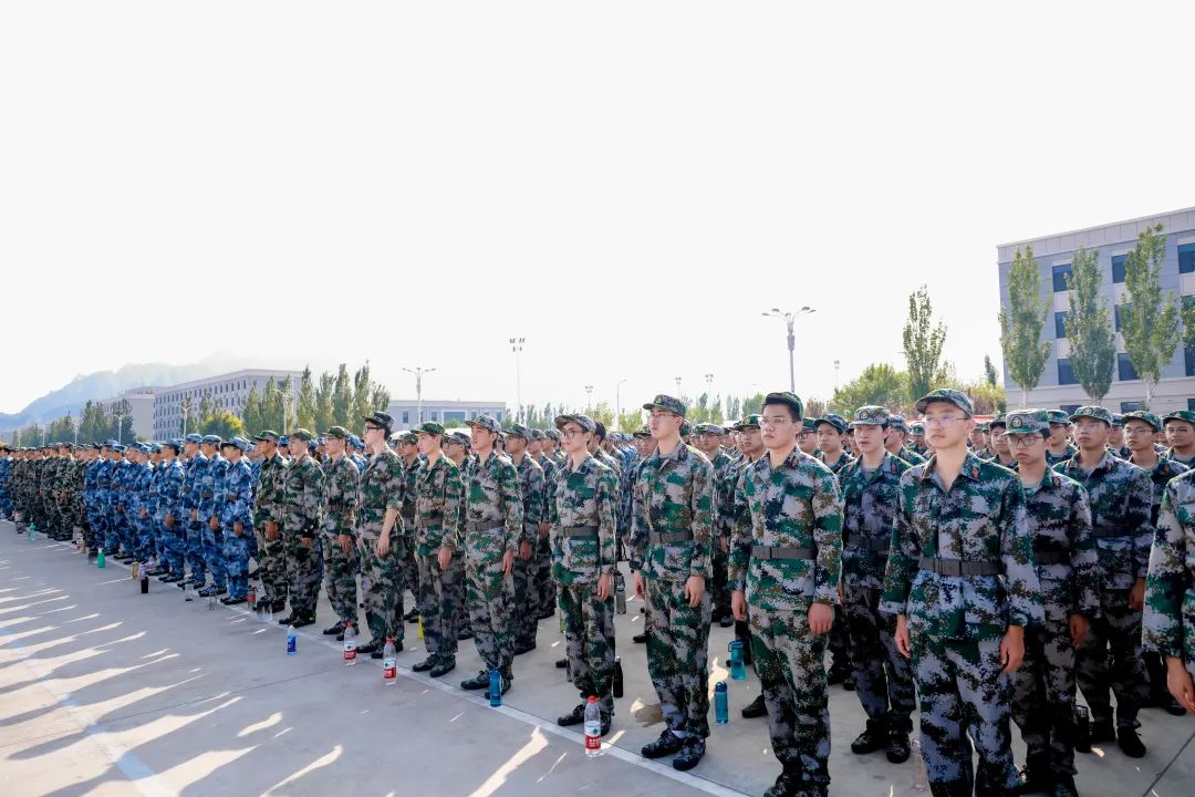 全体参训学生在白杨先锋队的带领下庄严宣誓:服从命令,听从指挥,恪守纪律,尊重教官,磨练意志,顽强训练,立德敬业,博学竞先,奋斗有我,建功中传,矢志报国,使命在肩。