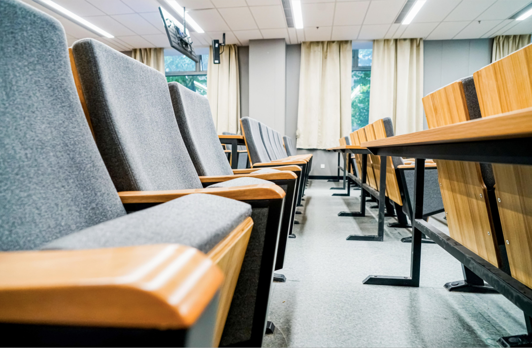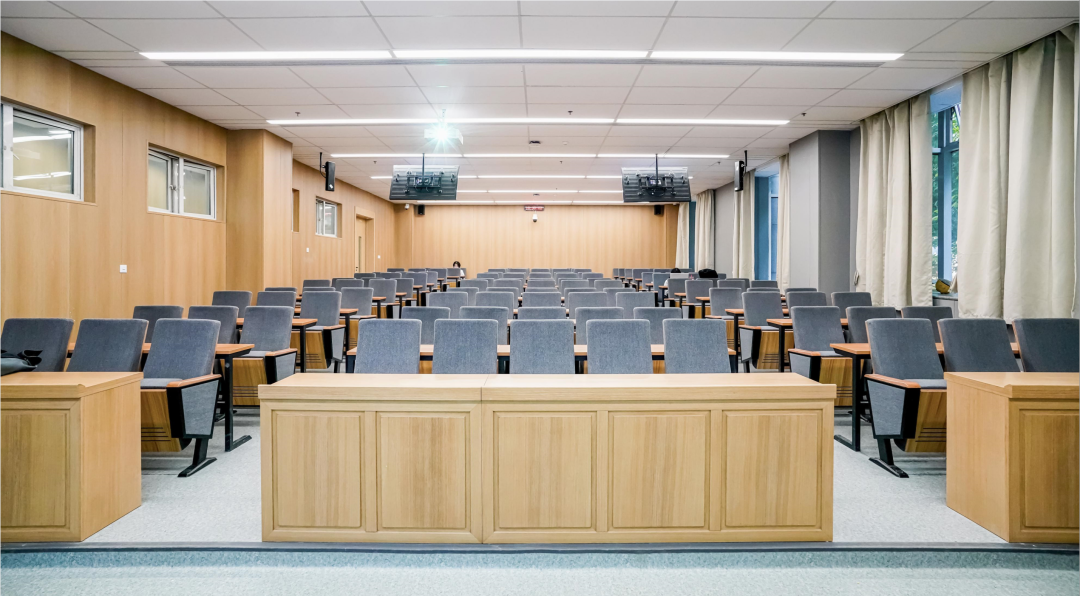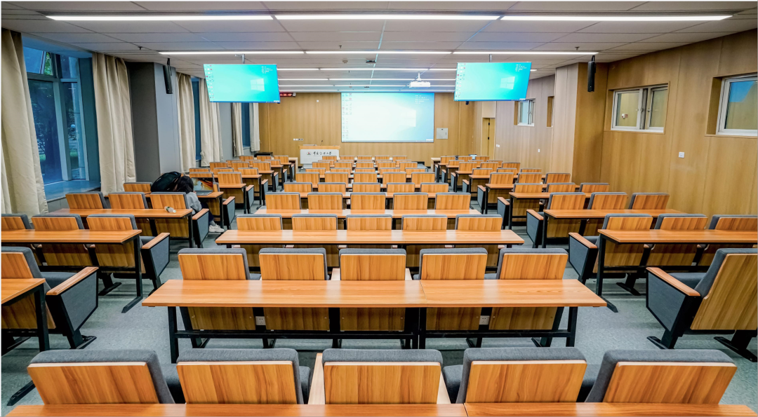 多功能报告厅分别位于1层和2层,采用全新升级的画框幕搭配智能音响系统,为师生带来沉浸式声画体验。辅助侧屏、软包座椅、多插孔等设计,也极大提升了师生教学的便捷度和舒适度。