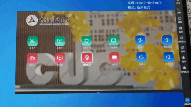步入48号楼中的智慧教室,更大的投影屏、更易用的教学系统和更多样的设备接口映入眼帘。在“润心工程”的精雕细琢下,在一次次高标准升级改造中,中传正不断提升智慧校园建设水平。