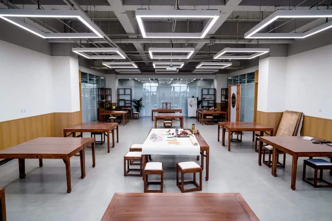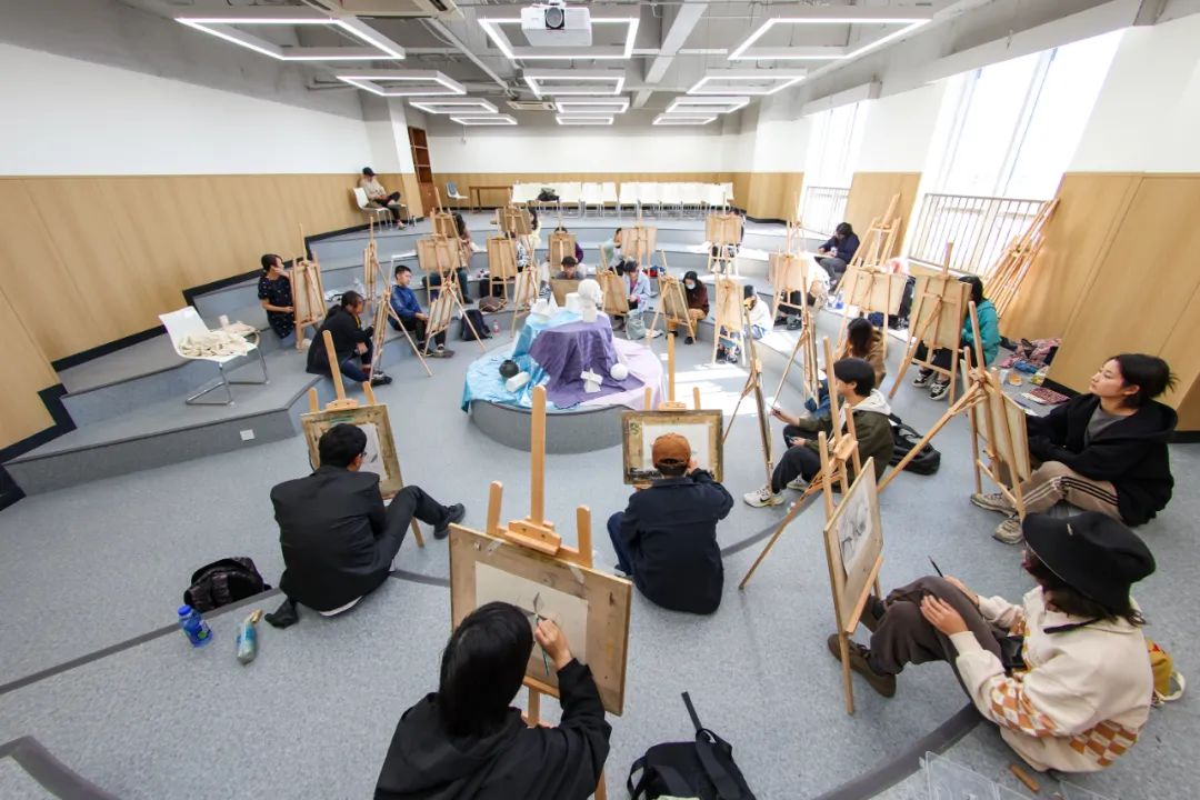 将12-13层打造为美术与设计教学空间,包括公共美术教室和中国画创新空间,为师生创作、研讨和作品存储提供了空间。