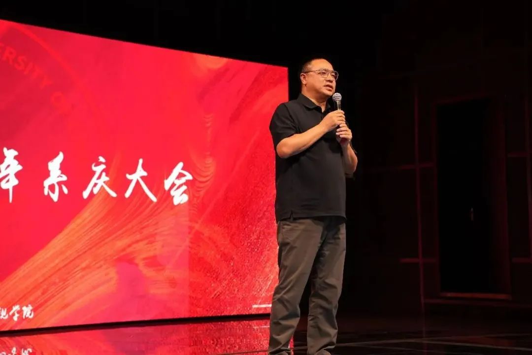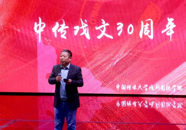 戏剧影视学院党委书记蓝旭代表学院领导,对三十年来戏文系的学科建设和人才培养取得的成果给予了高度肯定,热烈欢迎各位系友回家,并代表学院对戏文系的未来发展表达了殷切期待。