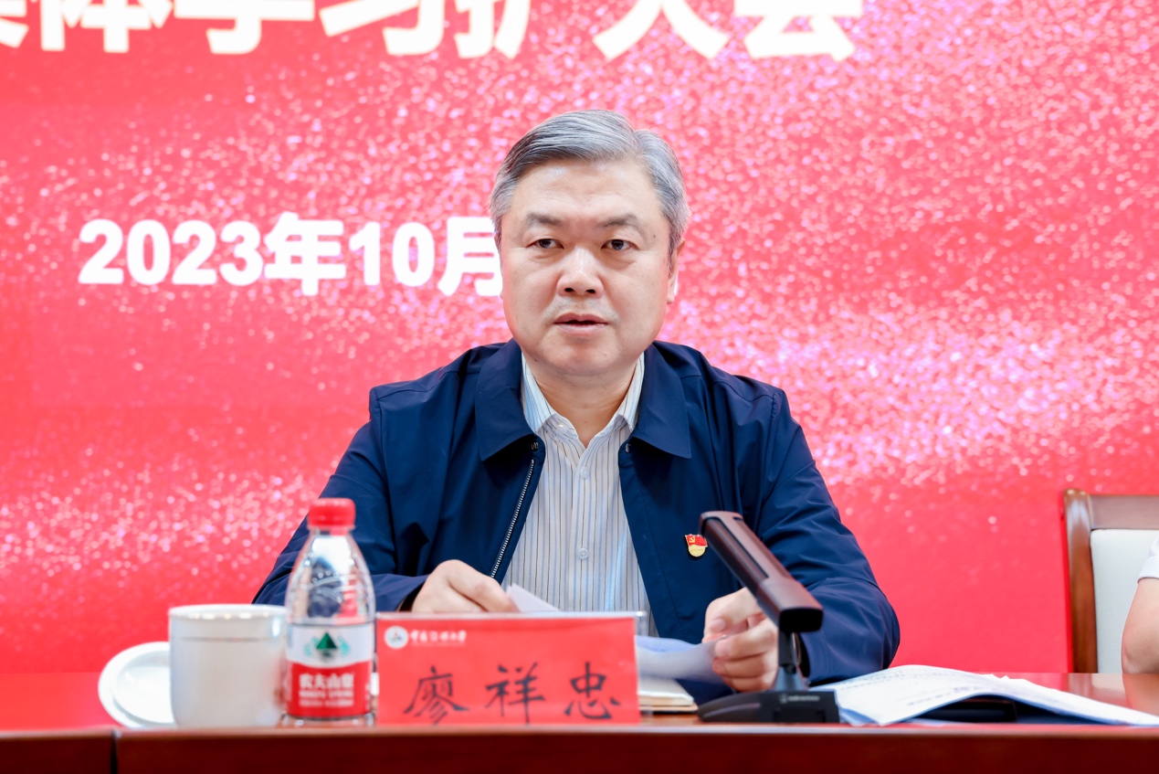 廖祥忠指出,习近平总书记关于宣传思想文化工作的重要指示高屋建瓴、精辟深邃,具有很强的政治性、思想性、指导性,为我们进一步做好宣传思想文化工作指明了方向。全国宣传思想文化工作会议正式提出和系统阐述习近平文化思想,在党的宣传思想文化事业发展史上具有里程碑意义。我们要认真学习领会习近平文化思想,深刻把握习近平文化思想的重大意义、丰富内涵和实践要求,坚持学以致用,做到学思用贯通、知信行统一。要认真贯彻落实全国宣传思想文化工作会议对宣传思想文化工作作出的重要部署,奋力写好文化建设的中传新篇章。