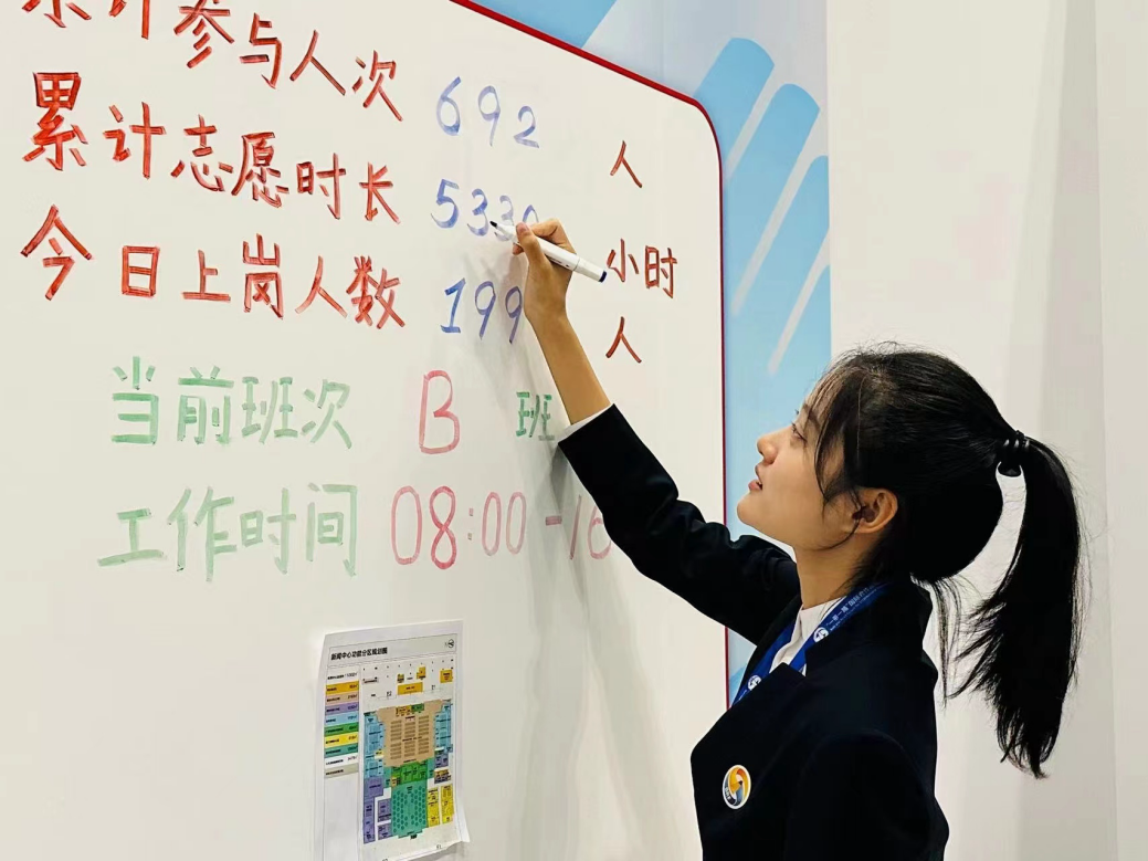 会场中,用心服务,无微不至;会场外,情谊联结,暖人肺腑。志愿者之家的同学们努力当好“志愿者们的志愿者”,协助完成公共物资整理、志愿者管理等工作,并在志愿者风采展板上用缤纷画笔绘制志愿者多彩的印记,为志愿者之家增添了一道靓丽风景。